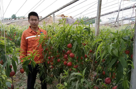 近日,魯西集團農化服務人員來到冠縣煙莊田寨村果樹大棚區走訪,剛好被忙碌的盧大哥看見,盧大哥高興的跟大家打招呼,并帶著大家來到他的油桃種植大棚。進入棚內,只見滿眼綠意之中,夾雜著無數色澤光亮的油桃,一串串、一簇簇,隨著樹枝微微擺動,好像在熱情的跟大家打招呼。