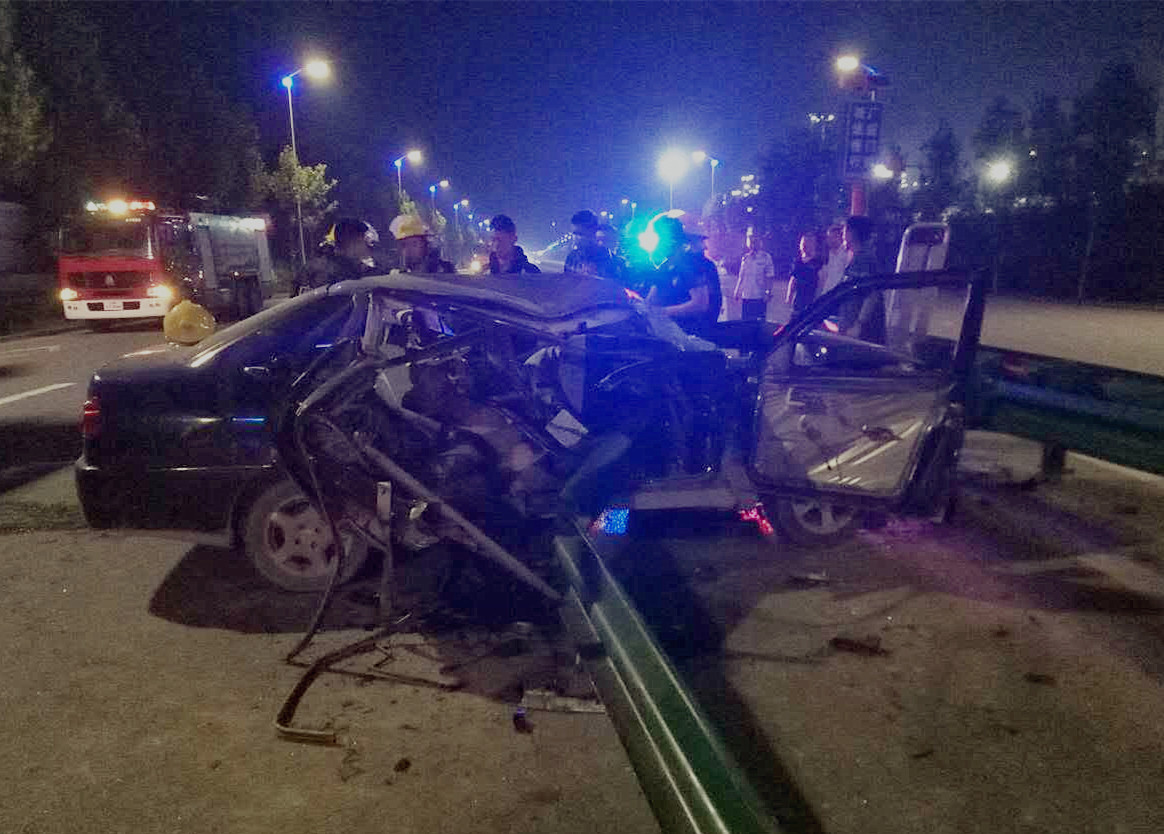 1:15分到達事故現場,經初步了解為一奇瑞牌轎車在行駛過程中撞至道路中間隔離帶,導致事故車輛嚴重變形,駕駛員手臂流血,雙腿被變形的車輛卡住無法移動,并不斷發出求救聲,車輛四周彌漫著混合的汽油、機油、空調制冷劑的刺鼻氣味。