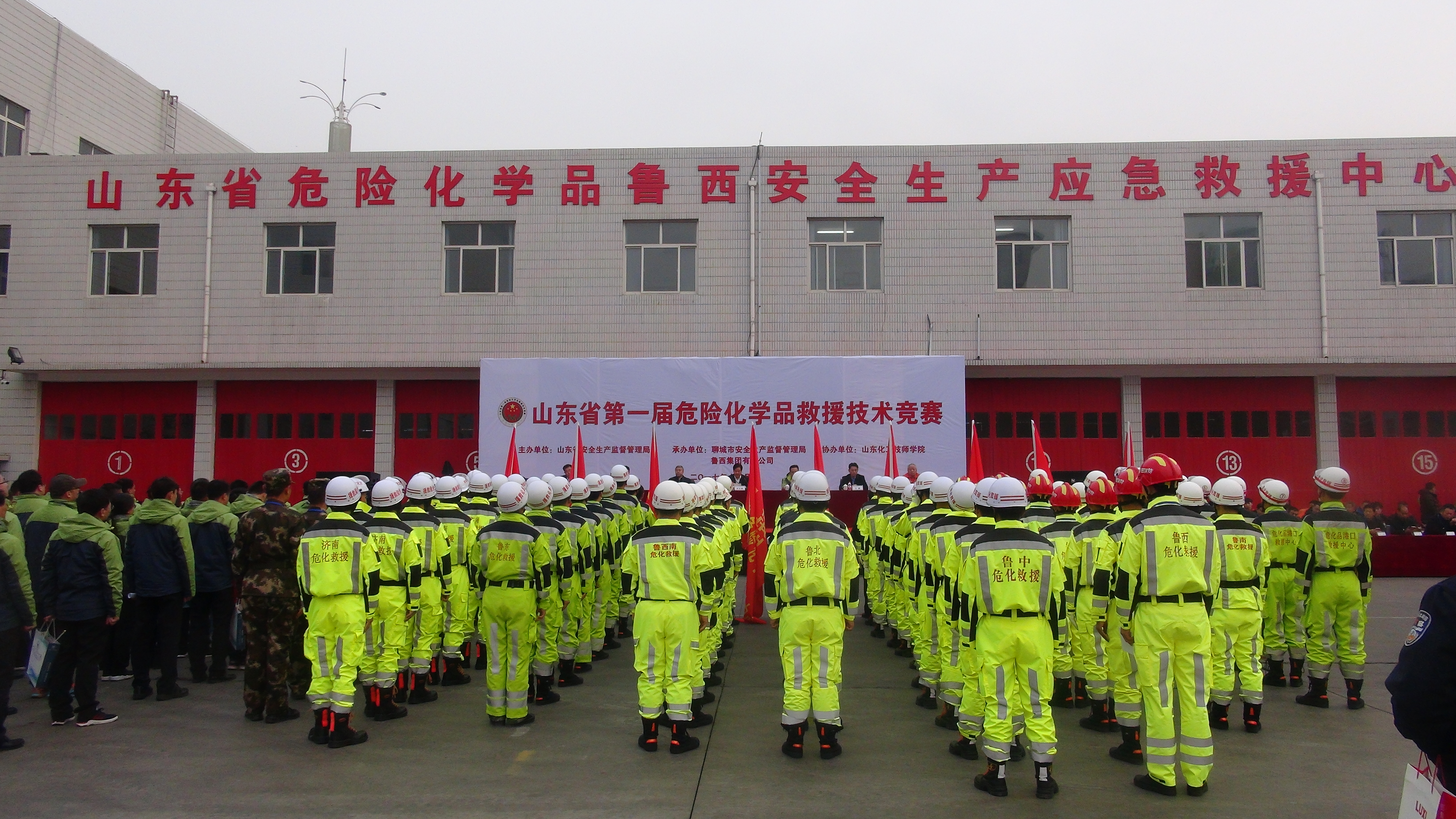 ? ? ? 11月16日-17日,由山東省安全生產監督管理局主辦,聊城市安全生產監督管理局、魯西集團有限公司承辦,山東化工技師學院協辦的山東省第一屆危險化學品救援技術競賽在魯西集團應急救援中心順利舉行。山東省安監局副局長高建軍、聊城市副市長洪玉振、山東省安全生產應急救援指揮中心主任郭方銘、魯西集團黨委書記張金成等出席開、閉幕式并現場觀摩了競賽。