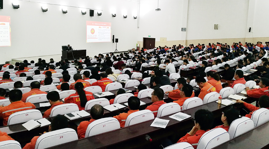 ? ? ? 11月22日,聊城市國資委組織各市屬國有企業在魯西集團召開了以“不忘初心、牢記使命”為主題的黨的十九大精神宣講活動,國資委黨委副書記、主任張春華同志主持并宣講。各市屬國有企業的黨委班子成員、各黨支部書記、中層正職以上干部共500余人參加。
