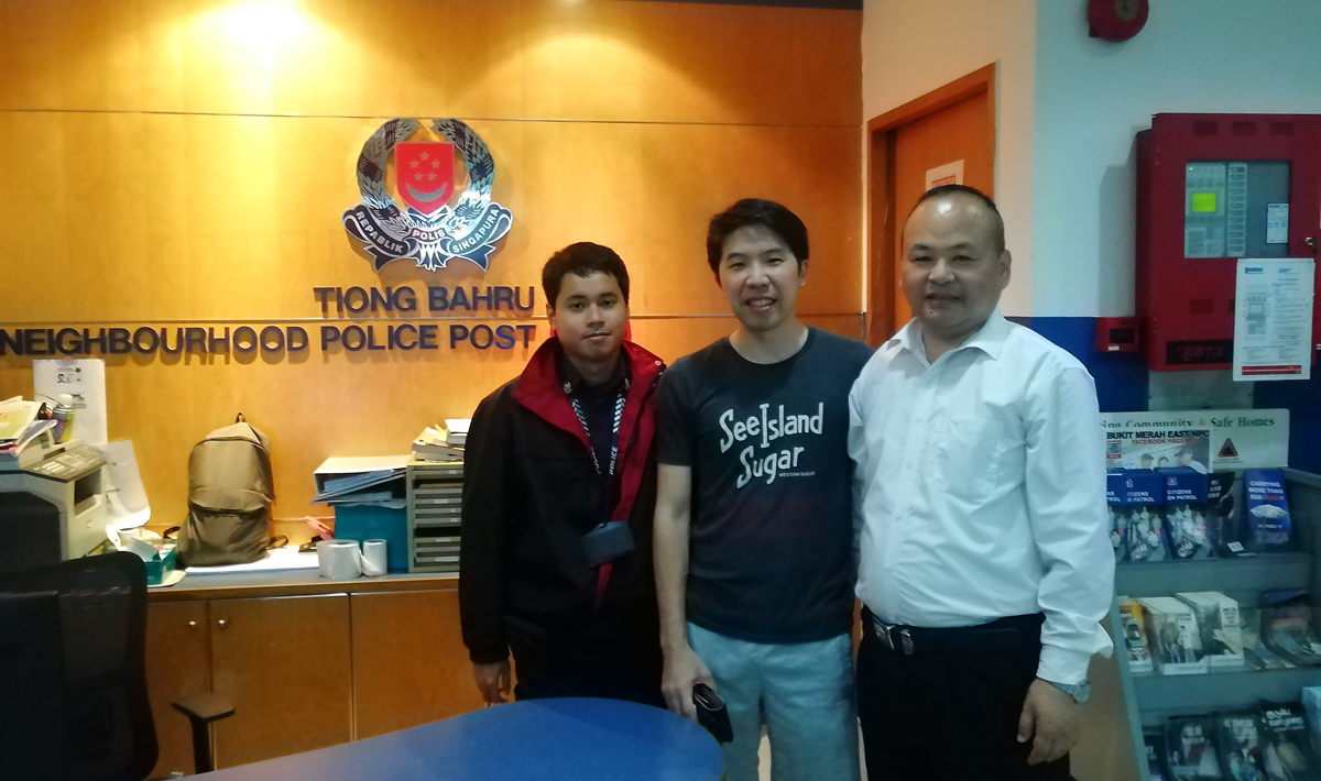 ? ? ? 兩人環(huán)望四周尋找錢包失主無果后,考慮到失主丟失錢包后肯定十分焦急,立即第一時(shí)間將錢包送到附近的警察局并說明情況。經(jīng)辦警務(wù)人員根據(jù)錢包中的有關(guān)聯(lián)系人信息,幾經(jīng)周折,最終尋找到錢包的失主Loh Mingquan(羅明全)先生。? ? ??羅先生40分鐘后趕到警察局,張國慶、韓國新兩位同志當(dāng)面將錢包交給羅先生,羅先生緊緊握住兩人的手,激動(dòng)的連說感謝:“謝謝!謝謝好心人!”在得知兩人是中國魯西集團(tuán)的員工來新加坡出差時(shí),更是連連豎起大拇指,對中國,對魯西集團(tuán),對魯西人肅然起敬,表示會向他的朋友和單位介紹魯西產(chǎn)品,給魯西推薦客戶。警察局人員對兩位同志的行為也表示非常感謝并合影留念。