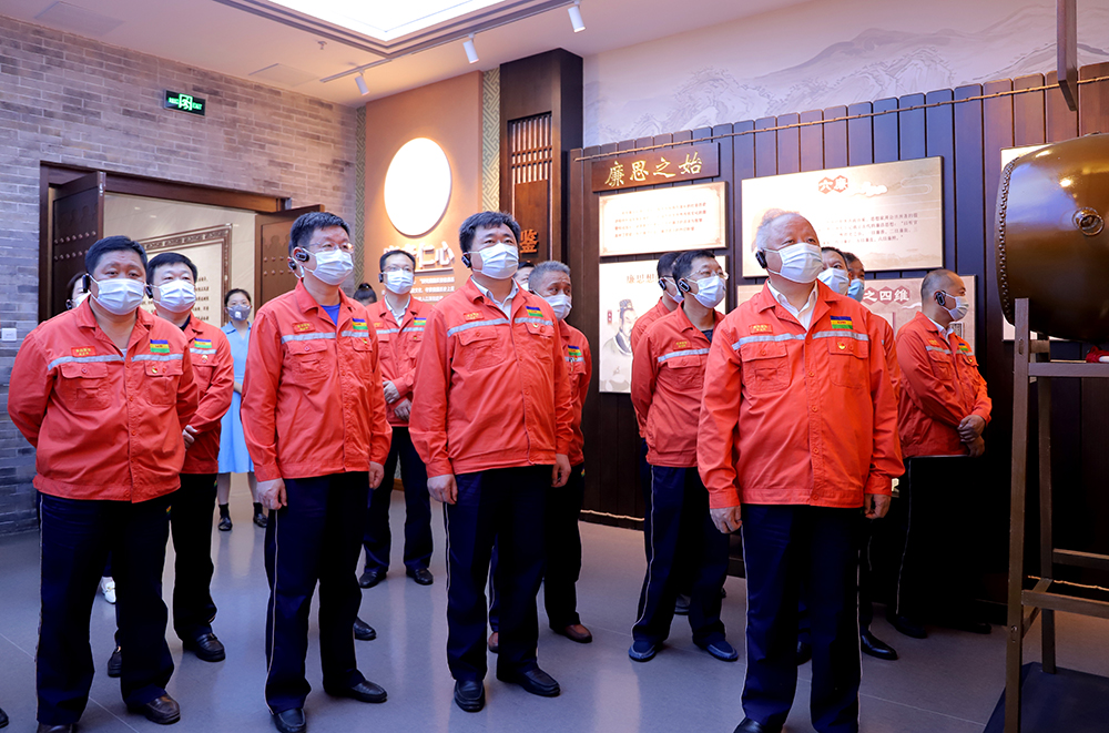 參觀結束時,黨委書記張金成帶領全體參觀人員重溫入黨誓詞,堅守初心使命。最后,觀看了聊城市國土資源系統廉政警示教育片。