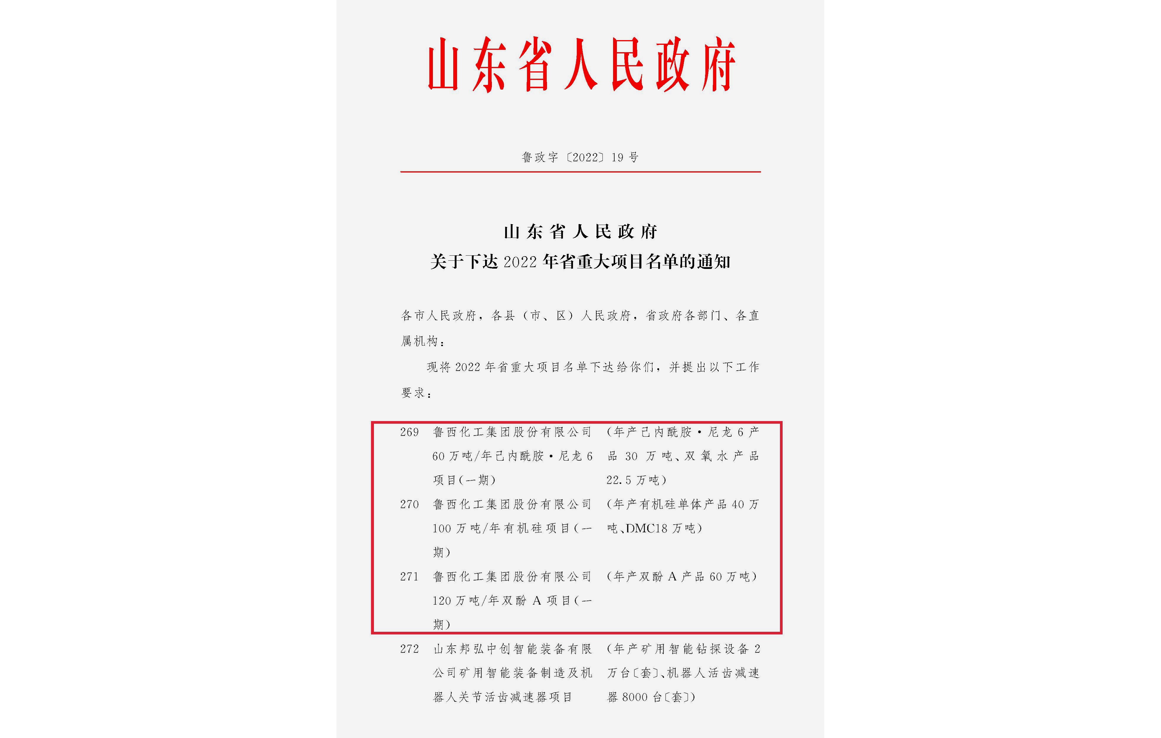 日前,山東省人民政府公布了2022年省重大項目名單,共包括373個實施類項目、127個儲備類項目。魯西集團60萬噸/年己內酰胺·尼龍6項目(一期)、100萬噸/年有機硅項目(一期)、120萬噸/年雙酚A項目(一期)3個高端化工和化工新材料項目入選省重大項目名單。
