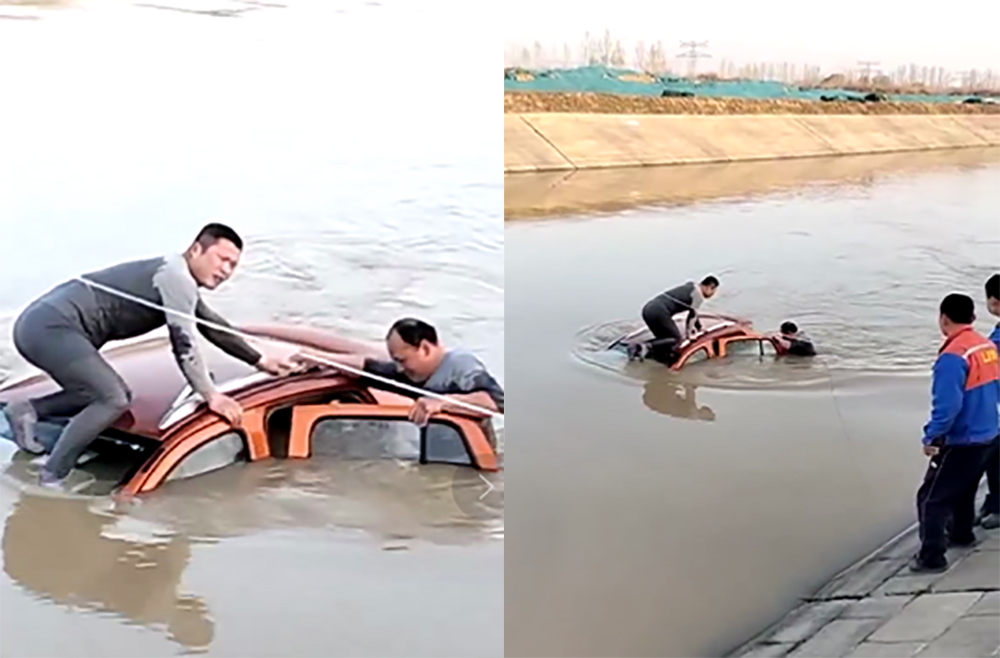 3月28日早6:30,325國道上車流如織,正是魯西集團員工上班比較集中的時間段。此時,在一干渠河水中,有一輛近乎被水沒頂?shù)霓I車自上游緩緩漂下。魯西集團第二工程事業(yè)部員工劉繼赟、孫慶旺行駛到325國道一干渠橋時,發(fā)現(xiàn)了這輛在河水中漂浮的轎車。二人隨即停下車,近前查看。但由于河水已近淹沒車頂,無法看到車內(nèi)是否有人員存在。二人立即決定下水營救。