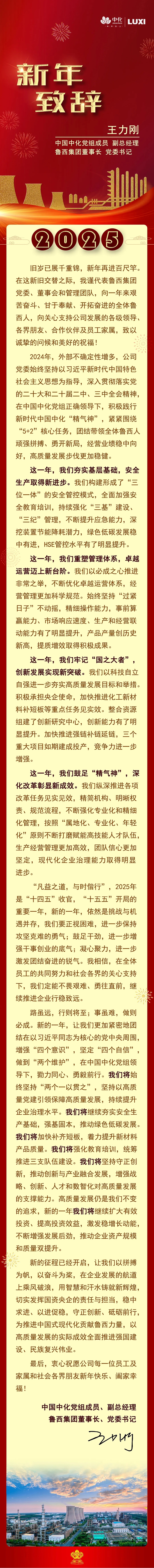 中國中化黨組成員、副總經理,魯西集團董事長、黨委書記王力剛新年致辭