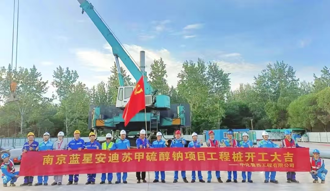 中化魯西工程承建的南京藍星安迪蘇甲硫醇鈉項目工程樁開工儀式隆重舉行。項目從籌備到開工,施工團隊始終秉持"安全第一、質量至上"的理念,行非常規之舉,采取非常規措施,在最短時間內推進土建樁機開工。